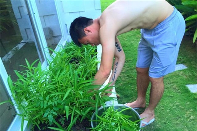 Chân dung chàng tiền đạo số 1 Việt Nam giản dị cắt rau lang ngay tại biệt thự mà vợ chồng anh sinh sống.