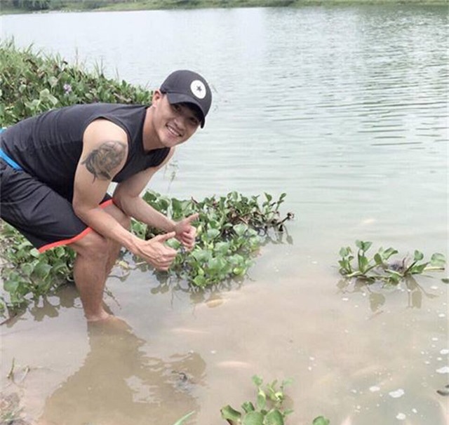 Những hình ảnh chàng thủ quân tuyển Việt Nam lội ruộng bắt cá vẫn thường được anh chia sẻ trên trang cá nhân.
