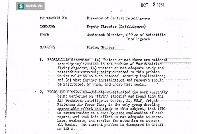 Ngày 2 tháng 10 năm 1952, toàn bộ trợ lí giám đốc tại văn phòng tình báo Mỹ đều nhận được một bản ghi chú có tựa đề "Flying Saucers."