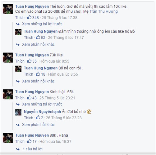 Tuấn Hưng hào hứng khi lượt yêu thích hình ảnh con trai tăng vọt trên trang cá nhân.