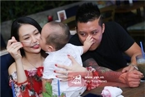 Dù bị đau nhưng ông xã Thu Hương vẫn hạnh phúc và hết lòng yêu chìu con trai.