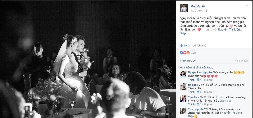 Mạc Hồng Quân phấn khích chia sẻ trên dòng thời gian của Kỳ Hân về niềm vui chuẩn bị chào đón con đầu lòng.