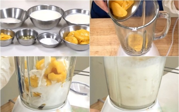 - Đổ mít vào máy xay, thêm 250ml sữa tươi vào cùng, xay nhuyễn.