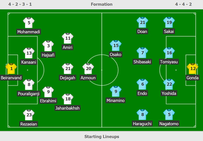 Đội hình ra sân của tuyển Iran và Nhật Bản.