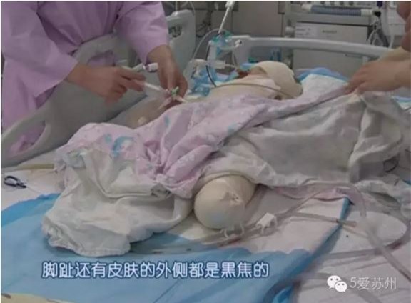 Bệnh viện Nhi Đại học Tô Châu để điều trị trong tình trạng bị bỏng nặng.