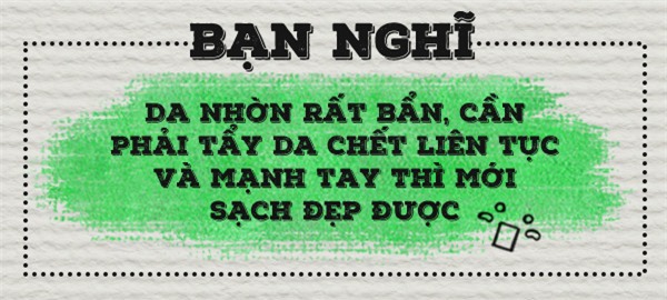 Sự thật thì: Dù dễ tồn đọng chất bẩn hơn các loại da khác, nhưng da dầu cũng vẫn rất nhạy cảm. Bạn không nên tẩy da chết quá nhiều và mạnh tay. Tốt nhất, hãy chỉ tẩy da chết 2-3 lần/tuần, dùng tay massage nhẹ nhàng và tránh các loại hạt quá to. Bên cạnh đó, để làm sạch sâu cho da, hãy sử dụng các loại mặt nạ có thành phần bùn khoáng hoặc đất sét nhé! Những nguyên liệu này sẽ giúp detox sâu bên trong lỗ chân lông – vị trí mà các hạt tẩy da chết không thể “len lỏi” vào được.