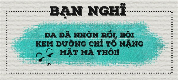 Sự thật thì: Da càng thiếu dinh dưỡng và độ ẩm thì càng tiết dầu, do đó bạn đừng bỏ qua khâu dưỡng ẩm cho da nhé! Hãy chọn các sản phẩm dưỡng kết cấu lỏng như nước hoặc gel, không chứa dầu (oil-free) và khi thoa, nên vỗ nhẹ lên mặt theo hướng vuông góc giúp kem thấm nhanh. Ngoài ra, đừng bỏ qua bước kem chống nắng. Bạn không cần “bôi trét” quá nhiều lên mặt, chỉ đừng quên hai bước quan trọng là dưỡng ẩm và chống nắng này thôi!