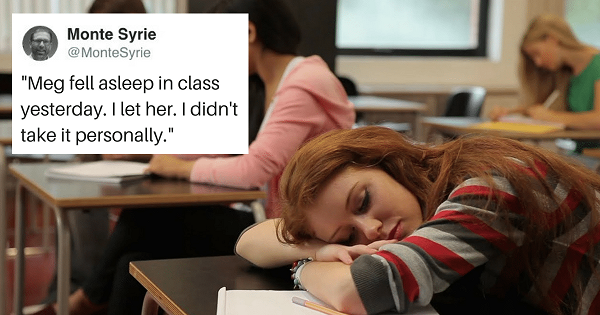 Monte Syrie là một giáo viên dạy Tiếng Anh tại trường cấp 3 Cheney ở Spokane, Washington, Mỹ. Trong giờ dạy của mình, thầy Monte đã để ý thấy một học sinh ngủ gật nhưng nếu như một số giáo viên khác thường sẽ bắt đánh thức học sinh dậy và thậm chí còn phạt, thầy đã để cho cô bé ngủ tiếp. Bài đăng trên Twitter của thầy giải thích cho quyết định này của mình đã nhanh chóng “gây bão”- một bài học quý giá về lòng đồng cảm, sự thấu hiểu và nhìn vào tổng thể.