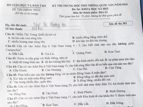 Xem thêm: Đáp án đề thi THPT Quốc gia 2018