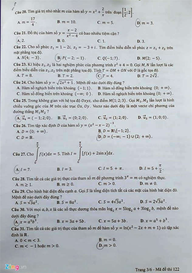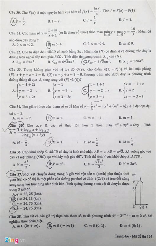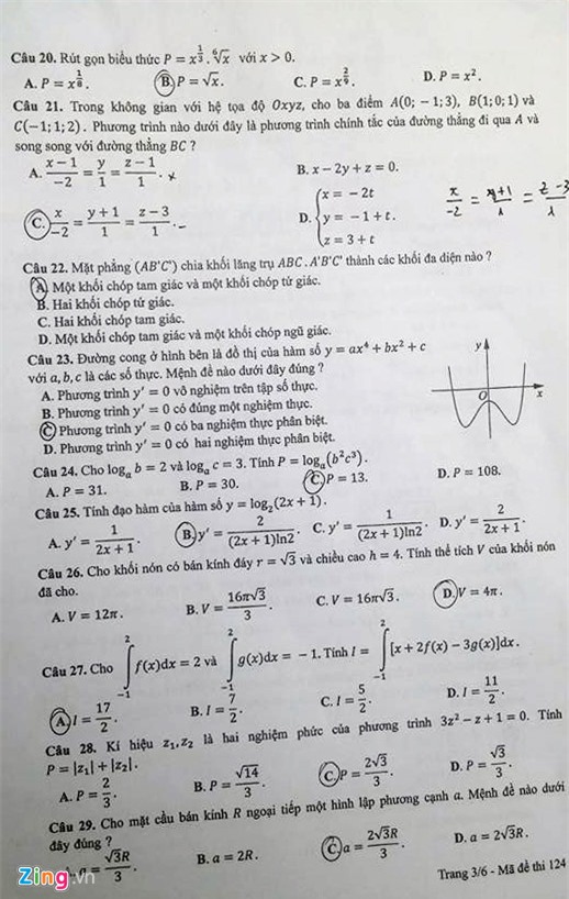 Lưu ý: Các đánh dấu trong đề là của thí sinh, không phải đáp án.
