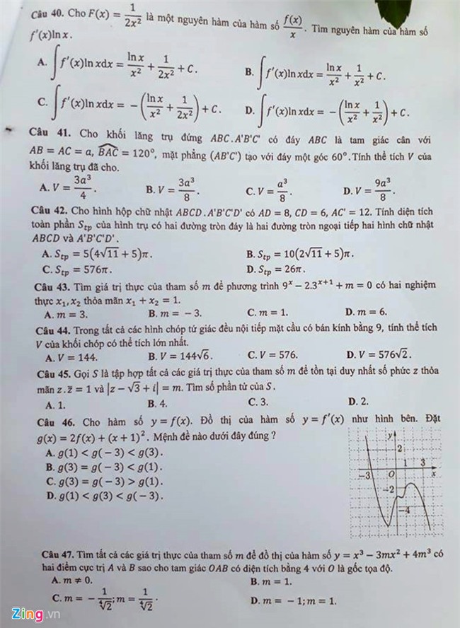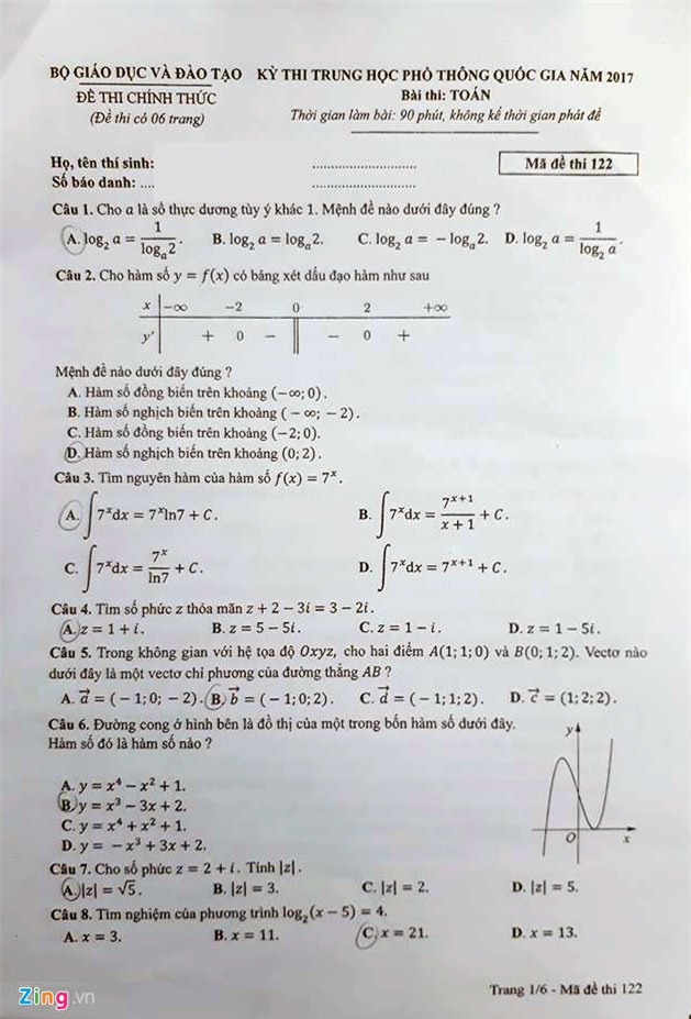 PV cập nhật đề thi và gợi ý bài giải 8 mã đề thi môn Toán THPT quốc gia 2017 do tổ giáo viên thực hiện.