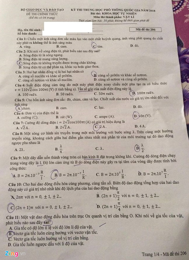 Xem thêm: Đáp án đề thi THPT Quốc gia 2018