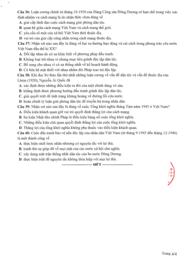Đề thi tham khảo kỳ thi tốt nghiệp THPT Quốc gia 2020 Môn Lịch sử