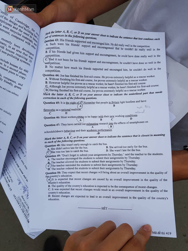Tiếng Anh có thể coi là điểm yếu của nhiều học sinh Việt Nam. Khá nhiều em rời phòng thi với tâm trạng không tốt vì không làm được bài, dễ bị điểm liệt.