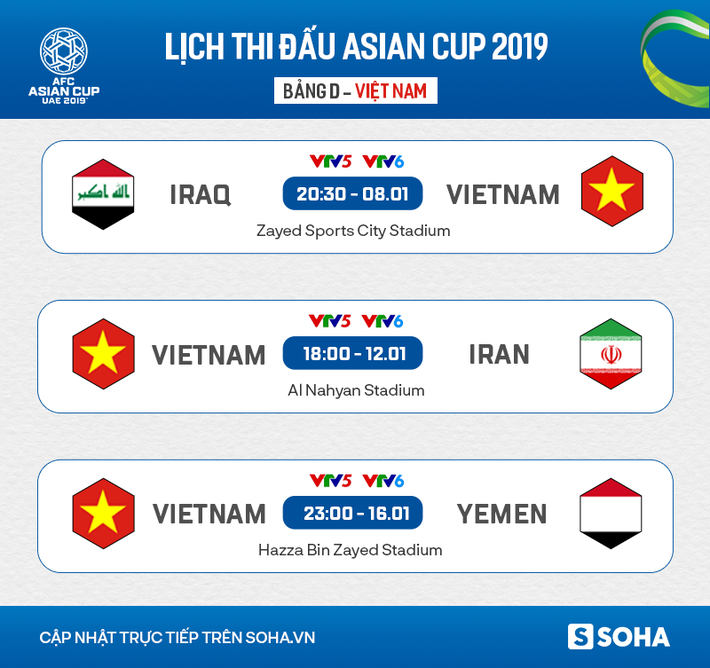 Bảng D Asian Cup 2019: Việt Nam 2-3 Iraq (nguồn: AFC)