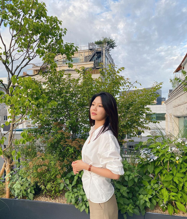 Vẫn là công thức áo blouse hoa + quần jeans nhưng khi Sooyoung chọn mẫu áo có chi tiết cổ cao, vẻ ngoài của cô càng thêm phần sang trọng. Mái tóc xõa, tỉa layer rất thanh lịch, nên hợp với outfit chỉn chu này.