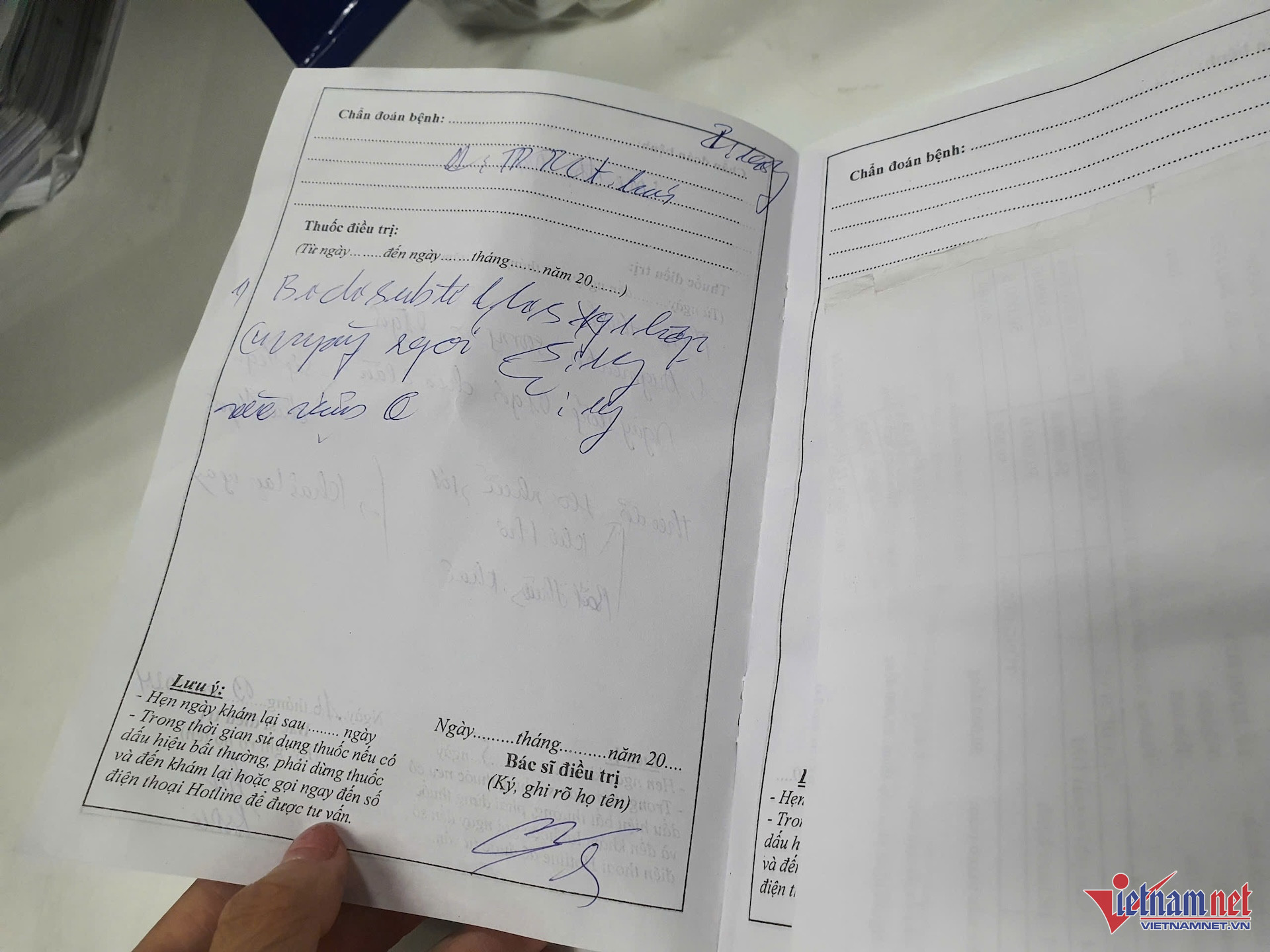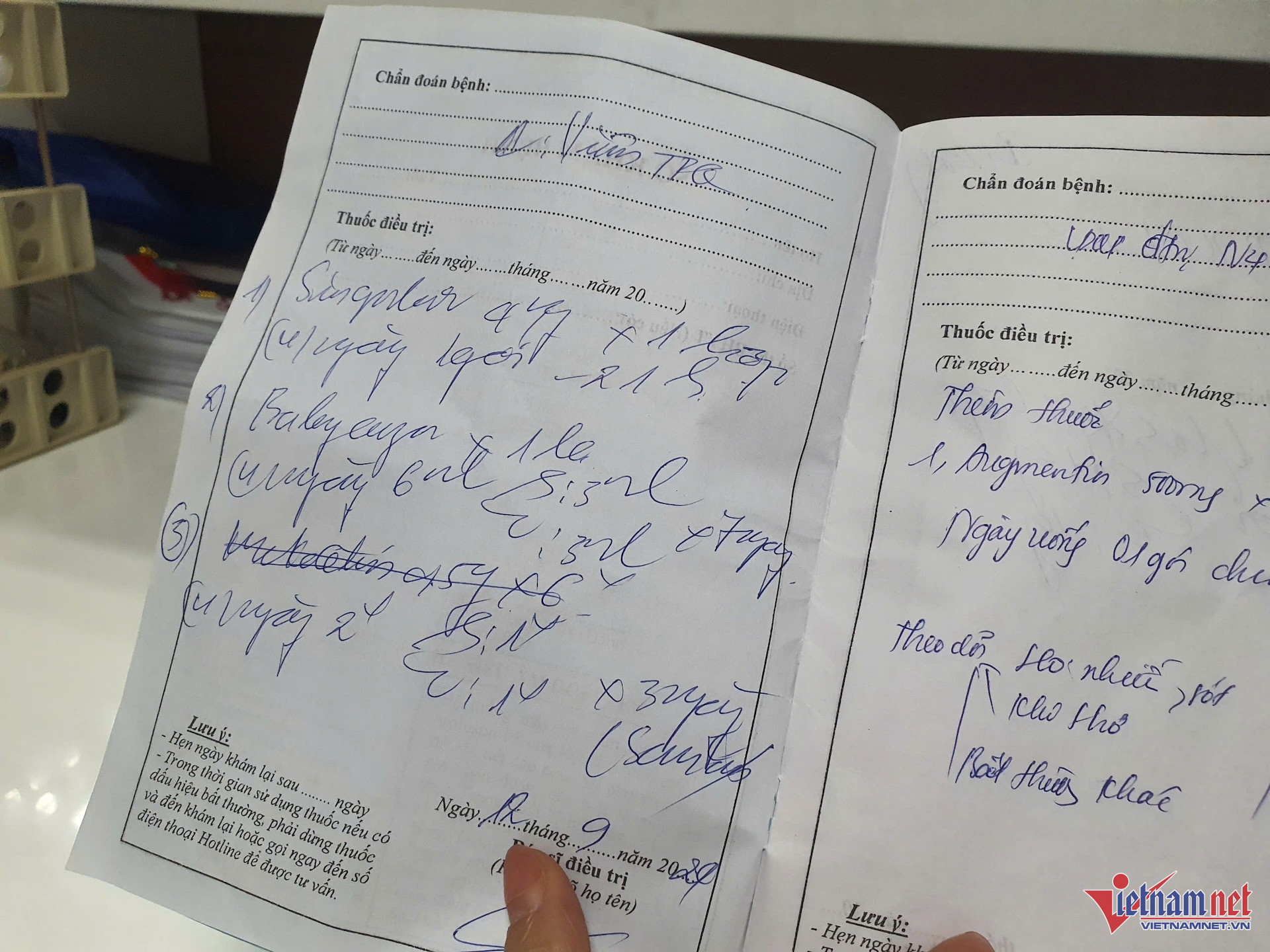 Đơn thuốc viết tay trên sổ khám bệnh của một bệnh viện tại Hà Nội. Ảnh: Võ Thu