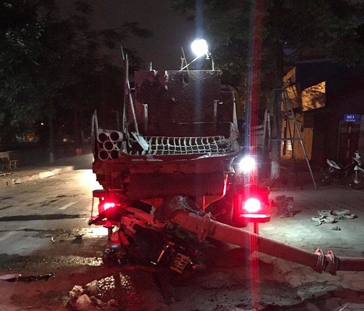 Khoảng 23h ngày 22/4, xe tải ben (chưa rõ biển số) lưu thông chiều đường từ Xã Đàn đi Đại Cồ Việt. Khi đến hầm chui Kim Liên (quận Đống Đa) thì va chạm với chiếc xe máy do một thanh niên điều khiển.