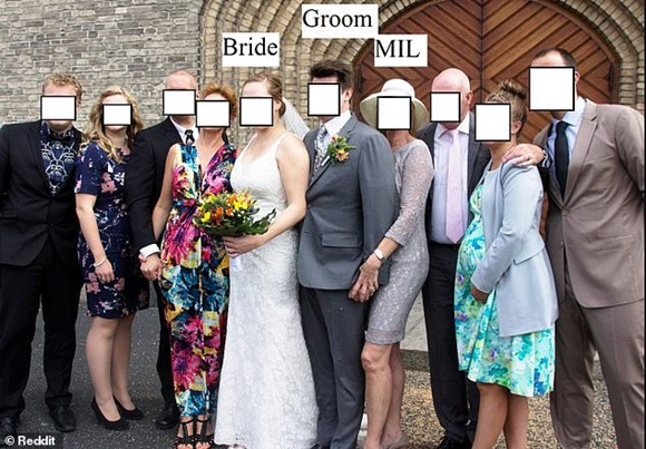 Trước đó vài ngày, 1 bà mẹ chồng thiếu tinh tế khác cũng bị dân mạng trên diễn đàn Reddit chỉ trích không thương tiếc vì hành động kém duyên tại lễ cưới con trai mình. Theo đó, mẹ chồng đứng nép e thẹn và nắm chặt tay chú rể trong lúc tất cả mọi người cùng nhau tụ lại chụp ảnh gia đình, hành động không khác gì ngăn con dâu nắm tay chồng. Chỉ cần nhìn hình thôi cũng đủ thấy hành động ấy đối với chú rể khiên cưỡng biết bao nhiêu và tất nhiên bất nhiêu cũng đủ để bà mẹ chồng chiếm hết tất cả sự chú ý, làm lu mờ luôn cả cô con dâu bên cạnh. Điều này một lần nữa lại khiến dân mạng có cái nhìn ác cảm hơn về những bà mẹ chồng, mẹ vợ thiếu sự duyên dáng ngay tại ngày trọng đại nhất đời con trai, con gái họ.