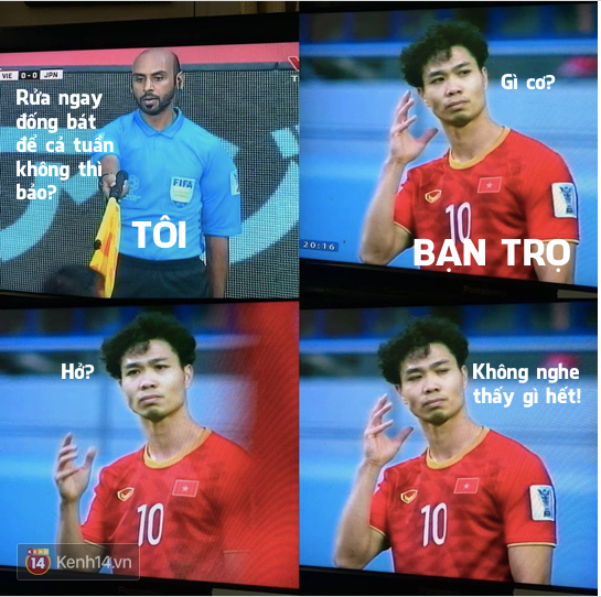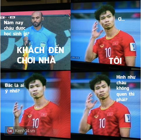 Và như mọi lần, "thánh biểu cảm" Công Phượng đã không khiến mọi người thất vọng khi ngay đầu hiệp 1 đã sản sinh những biểu cảm bất hủ không lẫn đi đâu được. Cụ thể, trong 1 tình huống Mohammed Abdulla Mohamed tuyên bố bàn thắng của Việt Nam mắc lỗi việt vị và không được công nhận, Công Phượng đã có nét mặt và hành động thể hiện sự khó hiểu, như thể không tin nổi vào tai mình, không nghe rõ trọng tài vừa nói gì. Không gì cản được, ngay lập tức biểu cảm này lại một lần nữa trở thành cảm hứng chế bất tận của giới học sinh - sinh viên.