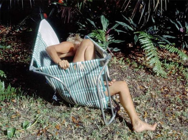 Nắng quá, nghiêng ghế nằm cho mát vậy.