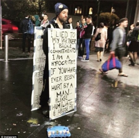 Một người đàn ông tại Sydney đã cầm theo tấm biển công khai hành vi ngoại tình của mình đồng thời nhận mọi sự “trừng phạt” của người qua đường.