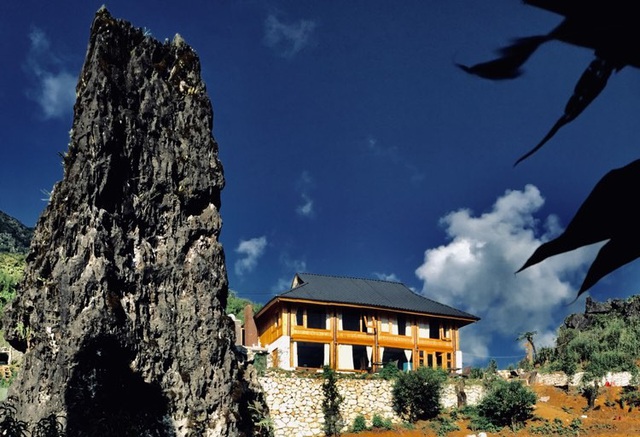 Công trình sử dụng chất liệu chủ yếu là gỗ và đá. Tất cả đều được làm tối giản, mộc mạc tạo sự hòa hợp với cảnh sắc thiên nhiên vùng cao.