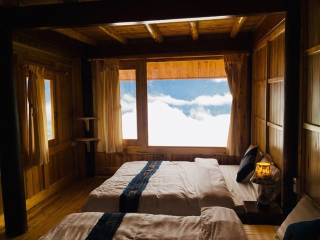 Nằm ở vị trí đắc địa nên mỗi buổi sáng thức dậy, có thể đưa mắt ngắm nhìn biển mây trắng cuồn cuộn và phong cảnh hoang sơ của núi rừng Tây Bắc.