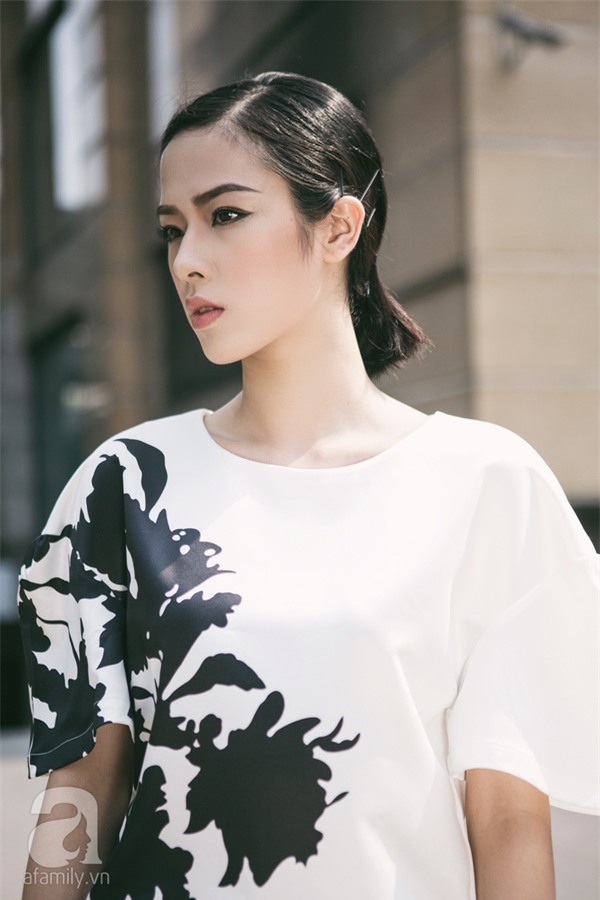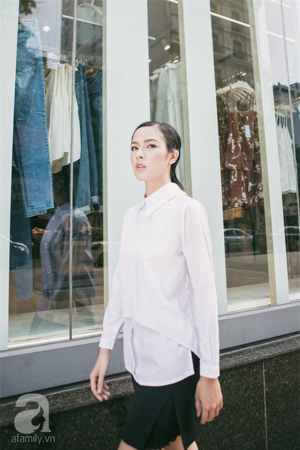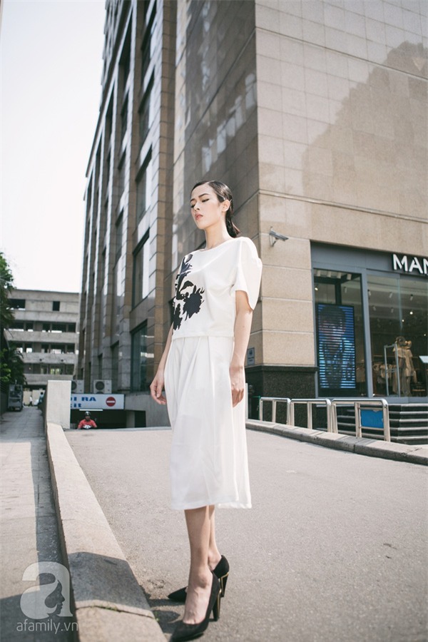 với tông màu trắng tinh khôi cùng áo boxy trắng hoạ tiết nhẹ nhàng. Tông