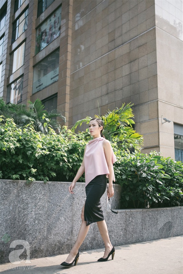 hợp cùng áo không tay thiết kế vạt bay bổng, ngày cuối cùng của tuần đi