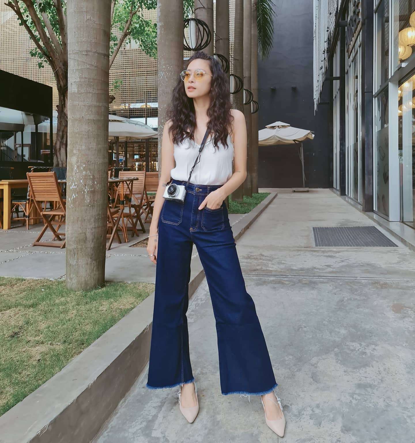 Sandal là kiểu giày đặc trưng của mùa hè nhưng cũng phù hợp để phối cùng các set đồ mùa thu. Thay vì chọn các mẫu sandal quá cầu kỳ, mang màu sắc rực rỡ, mỹ nhân Việt trên 40 tuổi ưu tiên sandal mang tông màu trung tính như đen hoặc nâu. Những phiên bản sandal này có sự trang nhã, thanh lịch, rất dễ phối đồ.