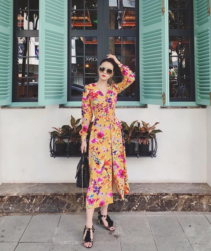 Sam cũng khoe street style ngập tràn sắc hoa trong mẫu váy từ thương hiệu bình dân.