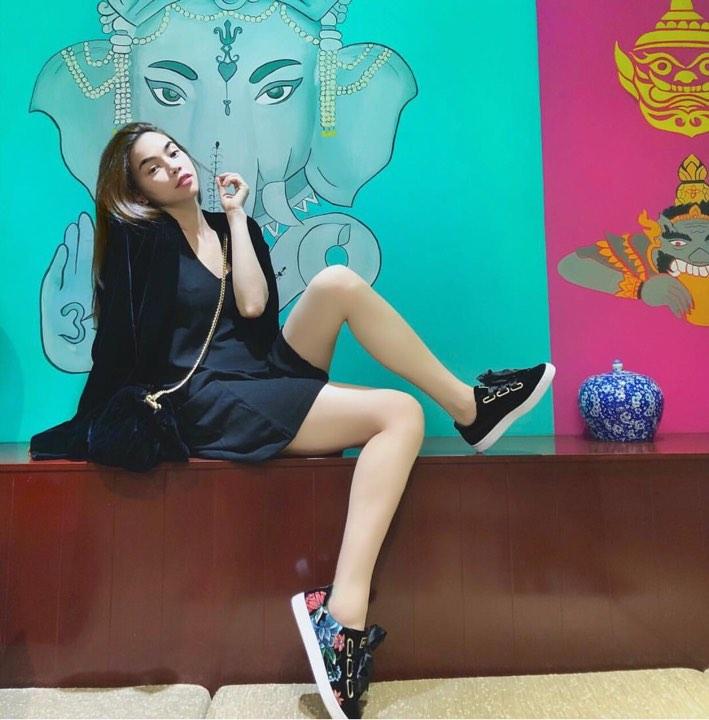 Hồ Ngọc Hà khoe chân thon nuột nà trong set đồ tối màu cùng váy ngắn cũn mix áo chất liệu nhung, giầy thể thao.