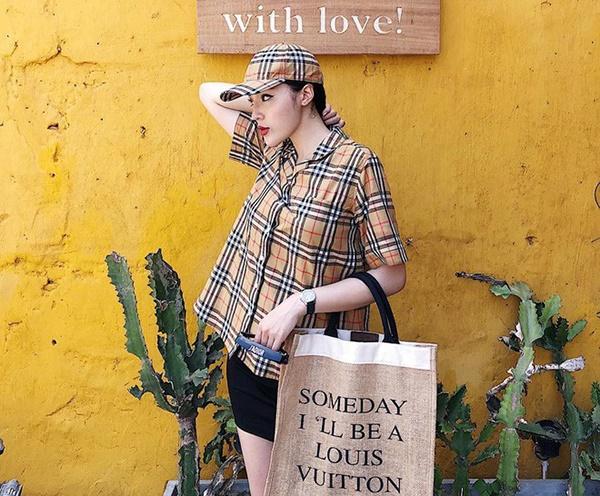 Lam Cúc cũng là một tín đồ thời trang khi liên tục sắm hàng hiệu đắt tiền. Diện nguyên set đồ kẻ sọc cùng chiếc mũ "đình đám", ở cô nàng toát lên vẻ đẹp nhẹ nhàng và đầy sang trọng