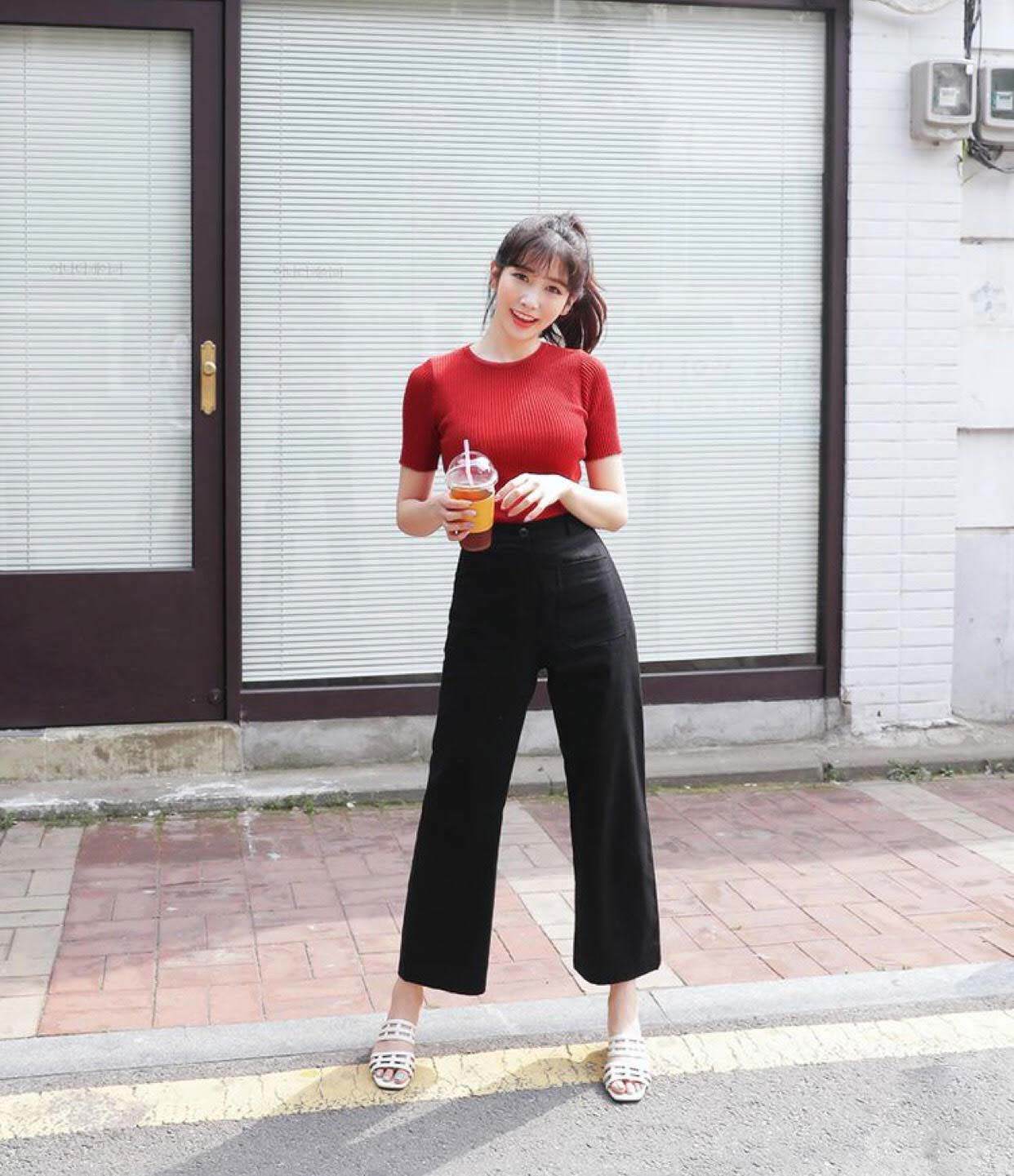 Hoặc một set đồ dạo phố hàng ngày với áo phông cổ tròn và quần culottes cũng là một gợi ý không tồi.