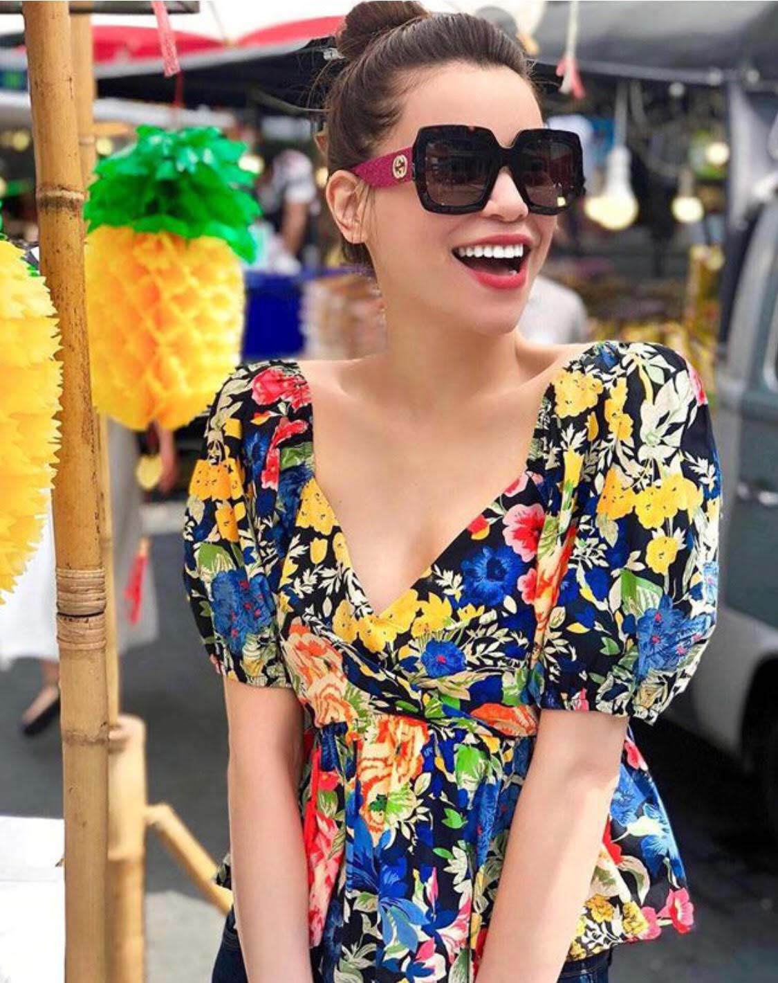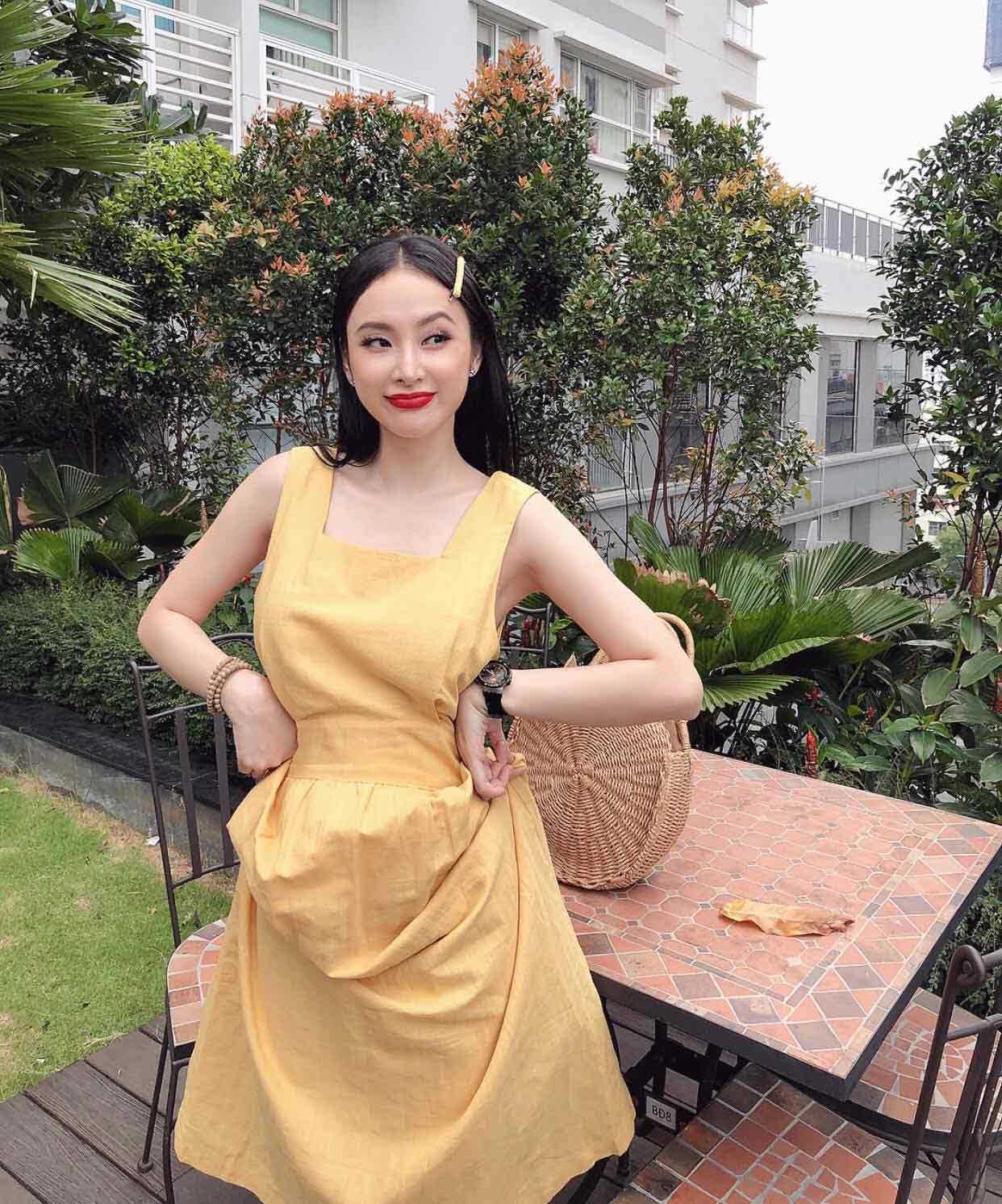 Angela Phương Trinh lại chọn ngay kiểu cổ áo vuông vức để khoe trọn chiếc cổ dài thanh tú của mình.