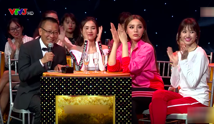 Mới đây, mạng xã hội bất ngờ lan truyền hình ảnh hoa hậu tham gia gameshow truyền hình Quý ông đại chiến. Ngồi kế bên đàn chị như Hari Won, Ninh Dương Lan Ngọc, Lâm Vĩ Dạ... mỹ nhân họ Nguyễn nổi bật với tông màu hồng rực cùng gương mặt sang chảnh highfashion.
