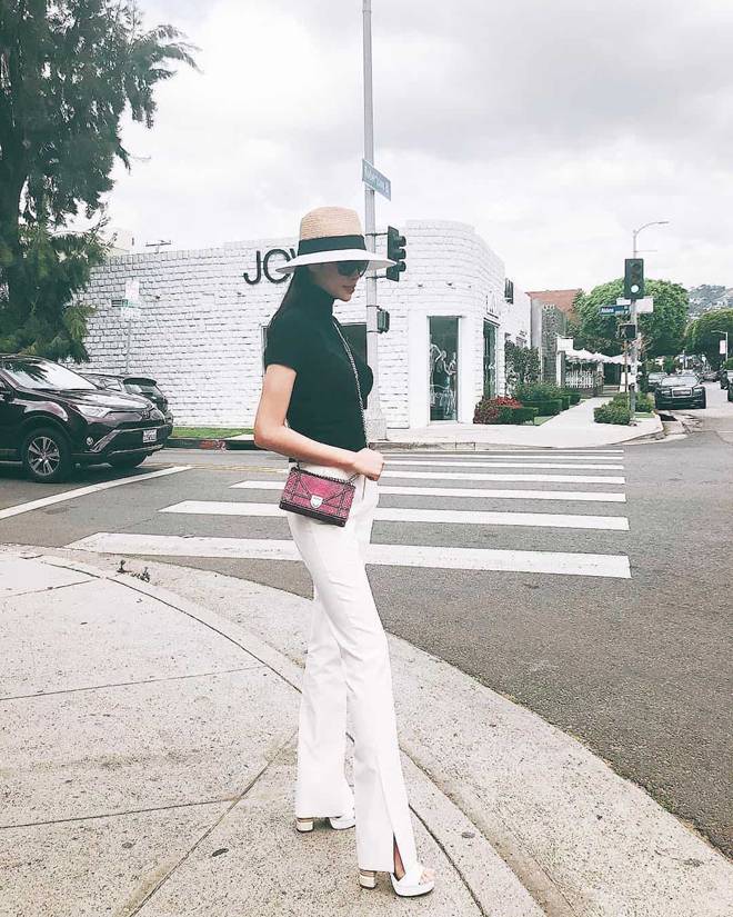 Diện áo sơmi trắng, phối cùng nón, kính mát và phụ kiện đắt giá, "soái tỷ" Phạm Hương thừa sức "công phá" bao bảng xếp hạng mặc đẹp chỉ bằng style đơn giản và thần thái sắc lẹm.