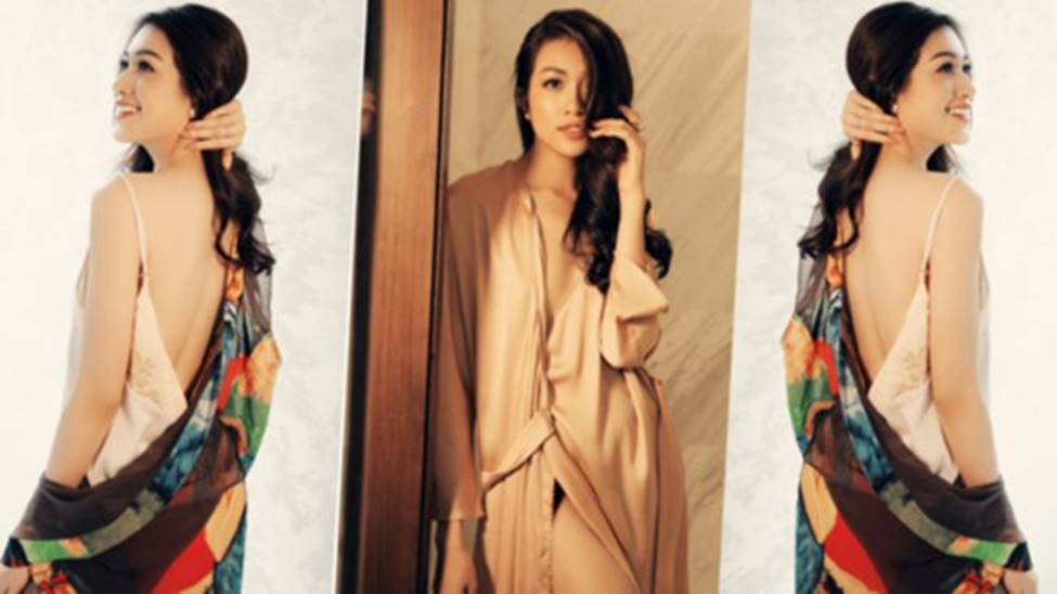 Á hậu Lệ Hằng tôn lên vẻ đẹp gợi cảm, mong manh bằng váy ngủ với chất liệu lụa. Chất liệu này được khen ngợi mềm mại, mơn trớn và sang chảnh hơn cho mọi cô gái để có giấc ngủ êm ái và sâu nhất.