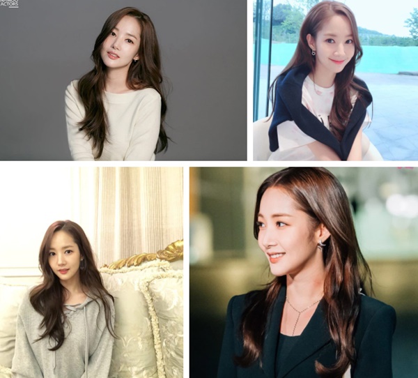 Kiểu tóc đặc trưng của ngọc nữ màn ảnh Hàn chính là tóc nâu trầm không mái uốn xoăn. Nữ diễn viên để đi để lại tóc này không biết bao lần và lần nào cũng được khen tới tấp bởi sự dịu dàng, nữ tính mà nó mang lại. Màu nâu trầm vừa hiện đại lại vừa sáng da, kết hợp cùng mái tóc xoăn sóng khiến vẻ ngoài Park Min Young trở nên sang trọng, tràn ngập sức sống.