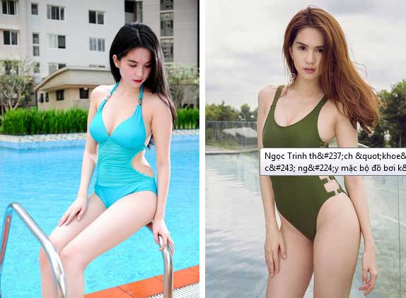 Nói đến Ngọc Trinh, người ta nghĩ ngay đến cô chân dài nóng bỏng với những bộ bikini sexy hết nấc. Có thể Ngọc Trinh không phải là người đa tài, không phải là người xuất sắc giữa một rừng ngôi sao sáng của showbiz Việt, nhưng bù lại, Trinh đẹp. Và có lẽ cũng tự ý thức được ưu điểm ngoại hình của bản thân, cô luôn cố gắng khoe triệt để body đáng mơ ước, nhất là khi diện bikini.