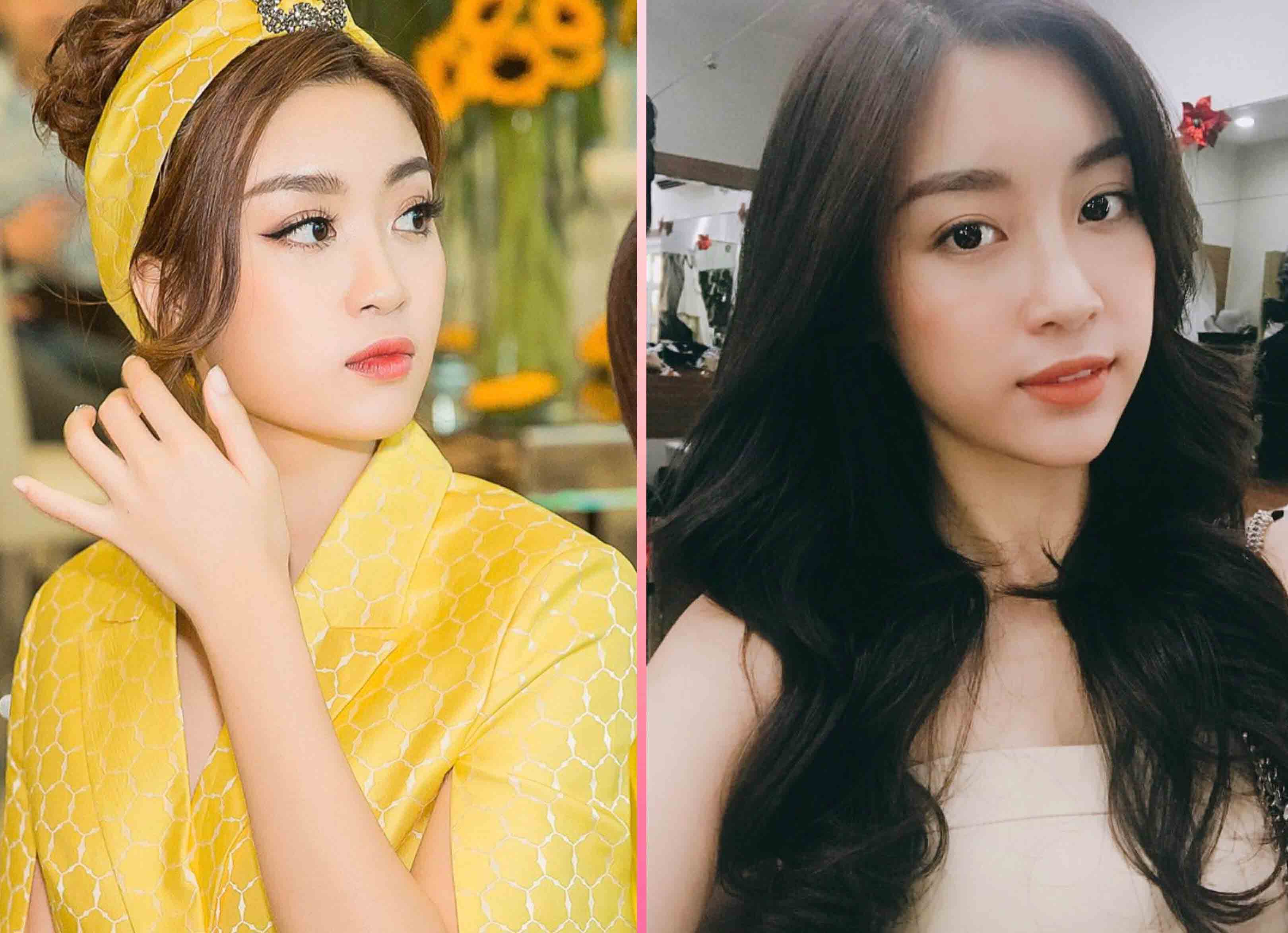 Để tóc đen không hề khiến cho Đỗ Mỹ Linh trông già hơn tuổi, trái lại màu tóc này còn khiến cho nàng hoa hậu vô cùng dịu dàng và đằm thắm.