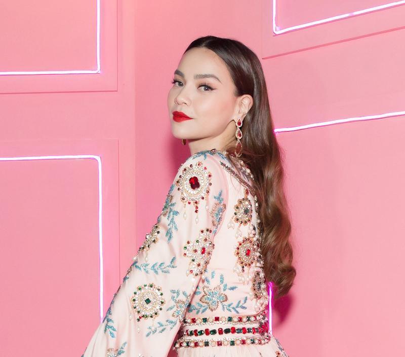 Hồ Ngọc Hà ghi điểm tuyệt đối với tông trang điểm son đỏ quyến rũ, khuôn mày cong kiêu hãnh.