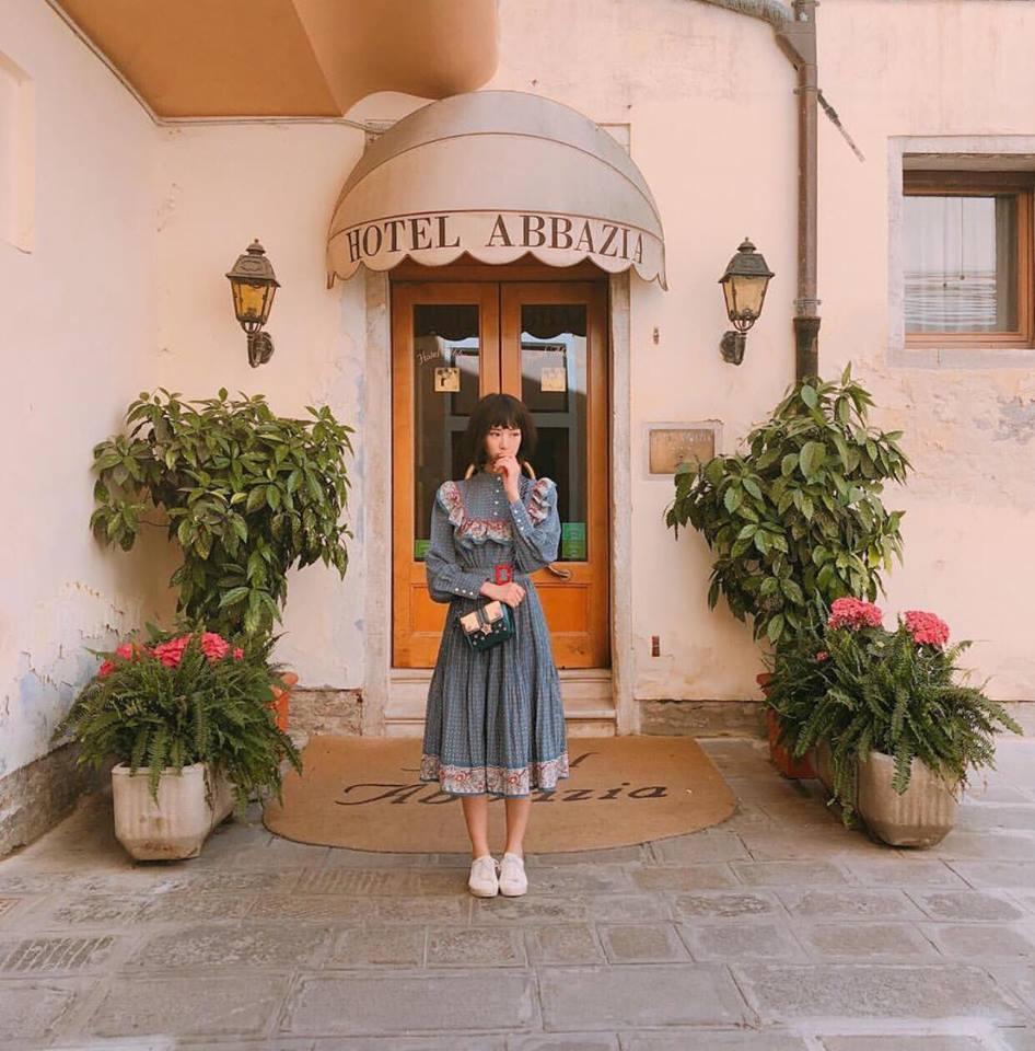Min nữ tính trong thiết kế váy đầm midi hơi hướng cổ điển.