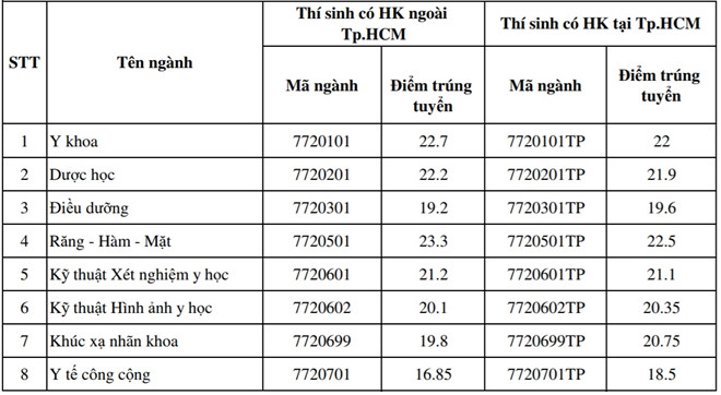 Điểm chuẩn các ngành của ĐH Y khoa Phạm Ngọc Thạch 2018.