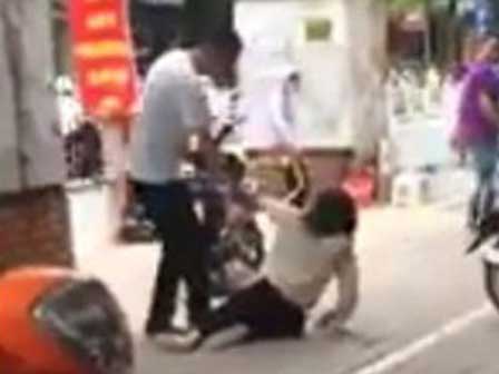 Tuy nhiên, không hiểu vì sao một lúc sau cô gái như ngất xỉu trên vỉa hè. Anh người yêu này liên tục kéo tay cô và quát "Đứng dậy".