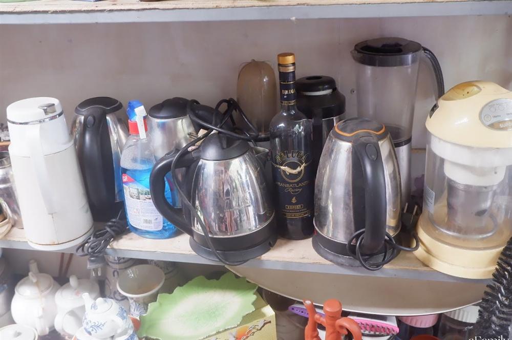Bạn có thể tìm thấy bình ủ nước nóng, ấm siêu tốc, máy xay, bàn là của hàng Nhật bãi vẫn còn dùng tốt ở những gian hàng này.
