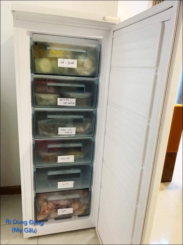 Bạn Dung Đặng dùng tủ đông đứng để phân loại thực phẩm được dễ dàng.