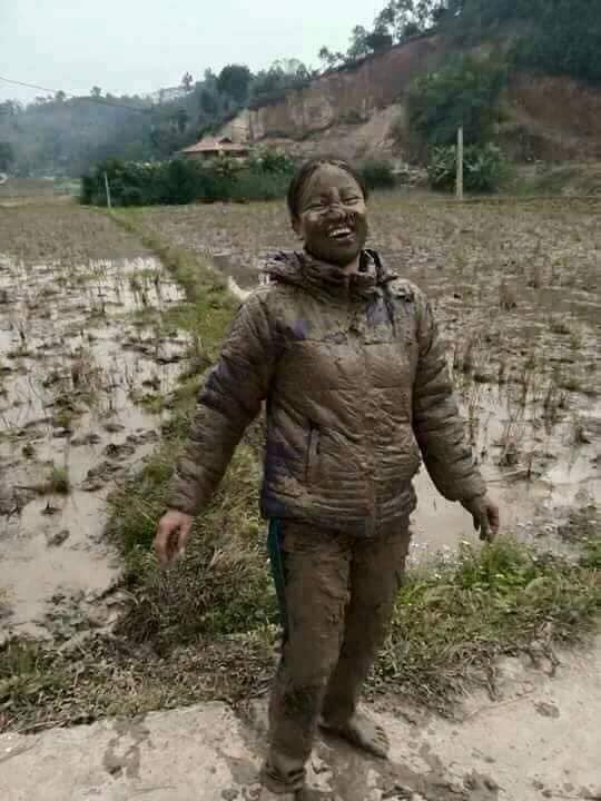 Sáng sớm trang điểm ăn mặc đẹp mà bây giờ lại lấm bẩn hơn cả đi cấy hái gặt lúa về. Nhìn đúng là thấy vừa thương vừa tội lại vừa buồn cười.