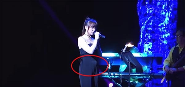 Ngoài thu hút sự chú ý bởi giọng hát sâu lắng, tình cảm, việc Hari Won mặc trang phục bó sát và liên tục để lộ vòng 2 to "bất thường" khi di chuyển trên sân khấu chính là điểm gây tò mò cho những ai xem đoạn clip này.